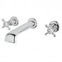 Perrin & Rowe - Wall-mounted basin mixer with low spout & white porcelain lever taps Unit Code: AU3560