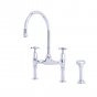Perrin & Rowe - Ionian 2 hole bench mounted sink mixer with straight legs, crosshead taps & spray rinse