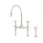 Perrin & Rowe - Ionian 2 hole bench mounted sink mixer with straight legs, porcelain lever taps & spray rinse Unit Code: AU41733