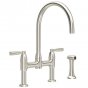 Perrin & Rowe - Oberon 1 hole sink mixer with round spout, lever taps & spray rinse Unit Code: AU48663