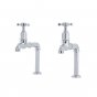 Perrin & Rowe - Io 2 hole bench mounted sink mixer with round spout & metal lever taps Unit Code: AU42933