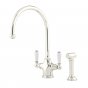 The Phoenician is the ultimate tap for the busy cook. A quick flick of the levers gives hot or cold water as required. The symmetry and versatility of the Phoenician kitchen tap sees it perfectly placed in kitchens from country to contemporary. The white porcelain levers can be changed to black porcelain levers or matching metal to complement the finish of the taps if desired. The handles feature a small red and blue dot to indicate hot and cold. All Perrin & Rowe taps feature excellent quarter-turn German made ceramic disc valves for many years of accurate and effortless use. All Perrin & Rowe kitchen and bar sink tap spouts rotate 360°. Perrin & Rowe's spray rinse kitchen taps are popular and highly functional, making light work of washing dishes, rinsing vegetables, and filling pots and vases. The durable 1.2m hose offers virtually unrestricted use. The patented spray rinse is operated using a sophisticated diverter mechanism. Turn on the tap, then press the button on the spray rinse to divert the flow to the rinse. Water will cease to flow from the spout of the tap when the spray button is released. Please note that the spray rinse is an integral part of each spray rinse tap and cannot be added later to a standard kitchen tap. BEFORE YOU ORDER THIS MODEL: This model does not suit incoming water pressure lower than 100kPa or higher than 500kPa. This model requires a minimum inlet water pressure of 100kPa to ensure complete diversion from the tap to the spray rinse. The chrome stop cocks supplied with this tap contain gauze filters. Please ensure your plumber is advised of minimum & maximum water pressure and to install the stop cocks as not doing so invalidates the taps warranty. Call our sales team for assistance. All Perrin & Rowe taps feature excellent quarter-turn German made ceramic disc valves for many years of accurate and effortless use. WaterMark Certificate WMKA02818 WELS Lic. 0150 Four Star rating: 7.5L per min