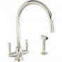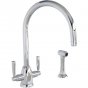 Perrin & Rowe - Io 2 hole bench mounted sink mixer with round spout & metal lever taps Unit Code: AU42933