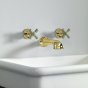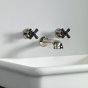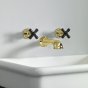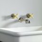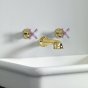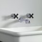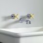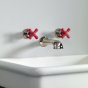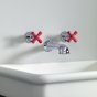 The Water Monopoly - Rockwell wall-mounted basin mixer with 200mm tubular spout & metal/coloured crosshead taps Unit Code: AU90943_AU90613