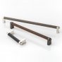 The purpose of designing the Irvine collection was to have a contemporary range with a bit of added interest. Joseph Giles took a simple round bar and then experimented with different ways of supporting it. The idea of having a stem that shrouded the grip seemed to work, and after experimenting with different shapes, the Irvine range was born. To add an extra layer of craftsmanship and texture this cabinet handle is bound in bridle leather, which is carefully hand-stitched. The Irvine cabinet handle with leather is available in four sizes and comes in all Josephg Giles signature finishes. A choice of leather colour enables the look to be tailored to meet individual preferences. Please specify your leather preference when ordering: