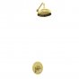 We've taken the guess work out of creating the perfect Perrin & Rowe shower experience. The hardest choice you'll make is the finish. The Perrin & Rowe Example Shower Layout 3C comprises an overhead shower arm, shower rose and a pressure balanced mixer. Shower roses come in three diameters with the 200mm being the most popular. The standard rose has a perforated plate and, when calcification is a problem in hard water areas, specify the Easyclean version with rubber holes. The pressure balanced shower mixer means a consistent flow even if taps are turned on and off elsewhere in the home. The pressure balance valve fitted into the Perrin & Rowe shower mixer is sensitive to changes in incoming water pressure and thus provides safe showering. The pressure balance valve is a sophisticated plumbing device which ensures that the volume of mixed water which leaves the shower mixer is a constant mix of the hot and cold supplies, even if the delivery pressure of one of them changes. In the event of a drop in the hot or cold water supply, the output of the shower will immediately reduce to the pressure of the lowest supply line. Pressure balancing shower mixers are suited to most systems. A minimum inlet pressure of 1 bar/100 kPa is required to achieve adequate performance. Accordingly, some gravity fed systems may not be suitable for pressure balanced shower mixers. The maximum inlet pressure is 5 bar/500 kPa. The faceplate on the mixer includes a discreet red and blue dot to indicate hot or cold as well as the etched Perrin & Rowe insignia. The white porcelain lever can be changed to a black porcelain lever or to matching metal to complement the finish of the taps if desired.