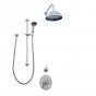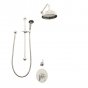 We've taken the guess work out of creating the perfect Perrin & Rowe shower experience. The hardest choice you'll make is the finish. The Perrin & Rowe Example Shower Layout 4C includes the handshower on sliding rail, and overhead arm with shower rose, diverter and single lever pressure balanced shower mixer. Handshowers on sliding rails are ideal for a growing family, and excellent for easy cleaning around the shower box, while the overhead shower provides a fixed height option. Alternate between the two for a flexible arrangement for the whole household. Shower roses come in three diameters with the 200mm being the most popular. The standard rose has a perforated plate and, when calcification is a problem in hard water areas, specify the Easyclean version with rubber holes. The pressure balanced shower mixer means a consistent flow even if taps are turned on and off elsewhere in the home. The pressure balance valve fitted into the Perrin & Rowe shower mixer is sensitive to changes in incoming water pressure and thus provides safe showering. The pressure balance valve is a sophisticated plumbing device which ensures that the volume of mixed water which leaves the shower mixer is a constant mix of the hot and cold supplies, even if the delivery pressure of one of them changes. In the event of a drop in the hot or cold water supply, the output of the shower will immediately reduce to the pressure of the lowest supply line. Pressure balancing shower mixers are suited to most systems. A minimum inlet pressure of 1 bar/100 kPa is required to achieve adequate performance. Accordingly, some gravity fed systems may not be suitable for pressure balanced shower mixers. The maximum inlet pressure is 5 bar/500 kPa. The faceplate on the mixer includes a discreet red and blue dot to indicate hot or cold as well as the etched Perrin & Rowe insignia. The white porcelain lever can be changed to a black porcelain lever or to matching metal to complement the finish of the taps if desired. The diverter distributes the mixed water from the valves, to the outlets. This enables the user to diverter water flow from shower rose to handshower.